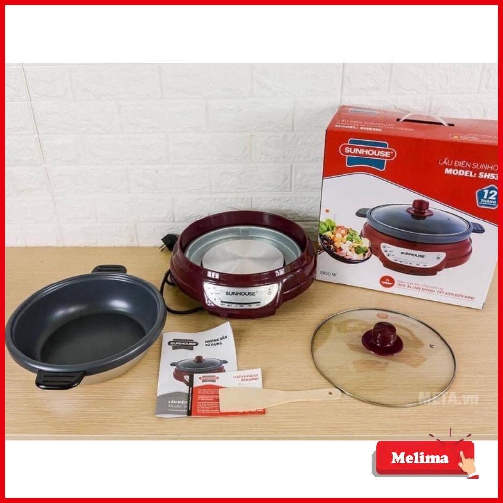 Nồi lẩu điện, Nồi lẩu Mini Sunhouse SH535L, chính hãng, nấu siêu nhanh, an toàn khi sử dụng, tay cầm chống nóng, Melima✅ Cam kết từ Melima