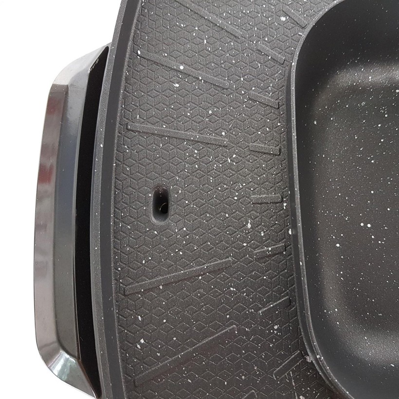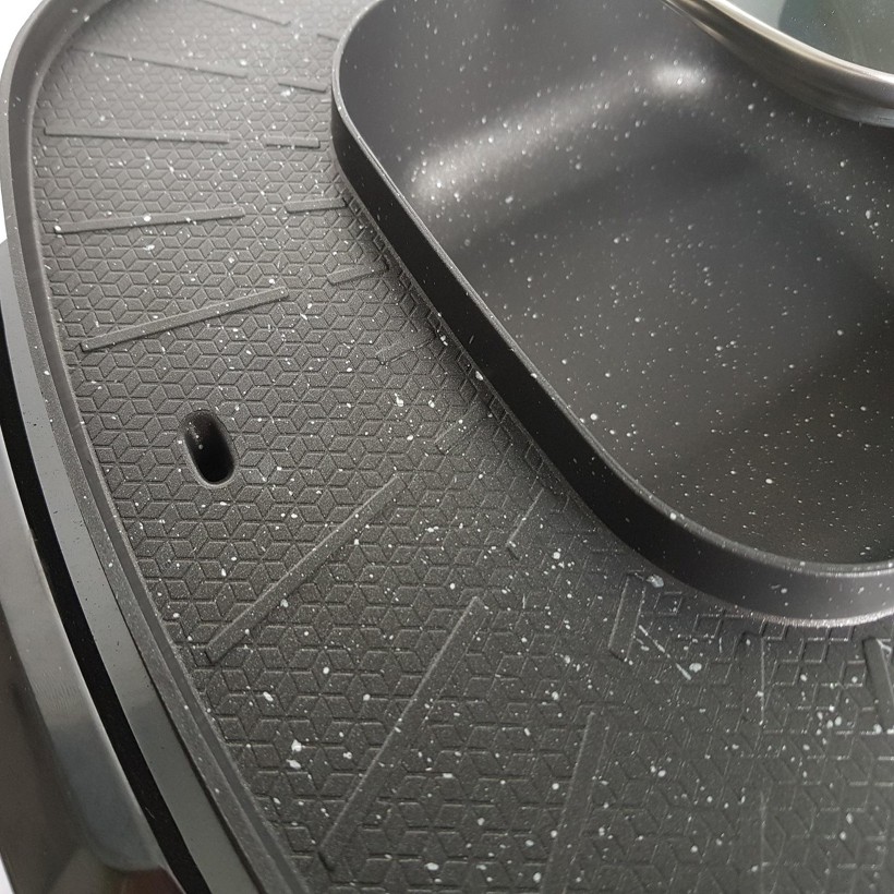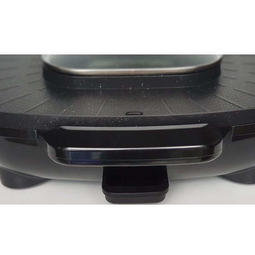 - Bên cạnh nướng, sản phẩm còn kết hợp với việc nấu lẩu giúp bạn có thể cùng lúc vừa nướng và nấu lẩu vô cùng tiện lợi. Nồi lẩu được đặt ở vị trí ngay chình giữa với dung tích 3 lít tạo nên sự cân đối cho việc sắp đặt các món ăn. Ngoài ra, khay nướng với diện tích nướng lớn (38 x 38 cm) một lúc bạn có thể nướng nhiều món ăn cùng một lúc, hay có thể dễ dàng nấu thêm những món chiên, xào... giúp cho bữa ăn đa dạng nhưng gọn gàng chỉ với 1 sản phẩm