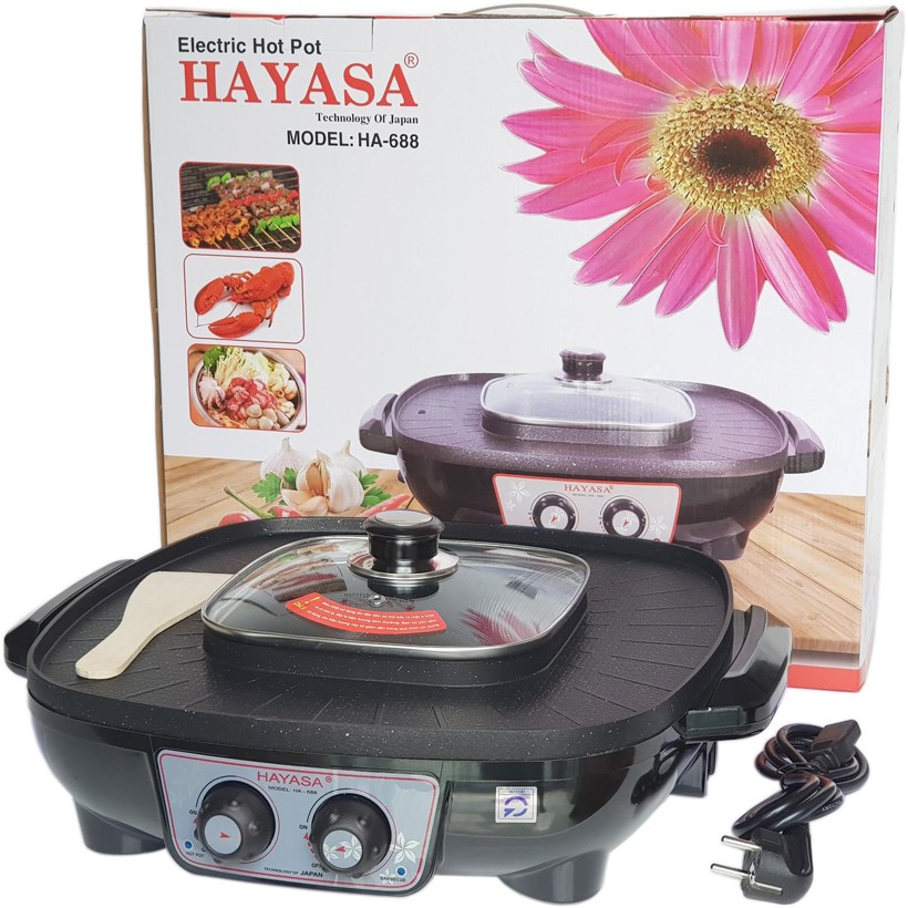 Giới thiệu [Mã ELHADEV giảm 4% đơn 300K] Nồi Lẩu Điện Nướng Vuông 2 trong 1 Cao Cấp Hayasa HA-688 vừa nấu lẩu vừa nướng