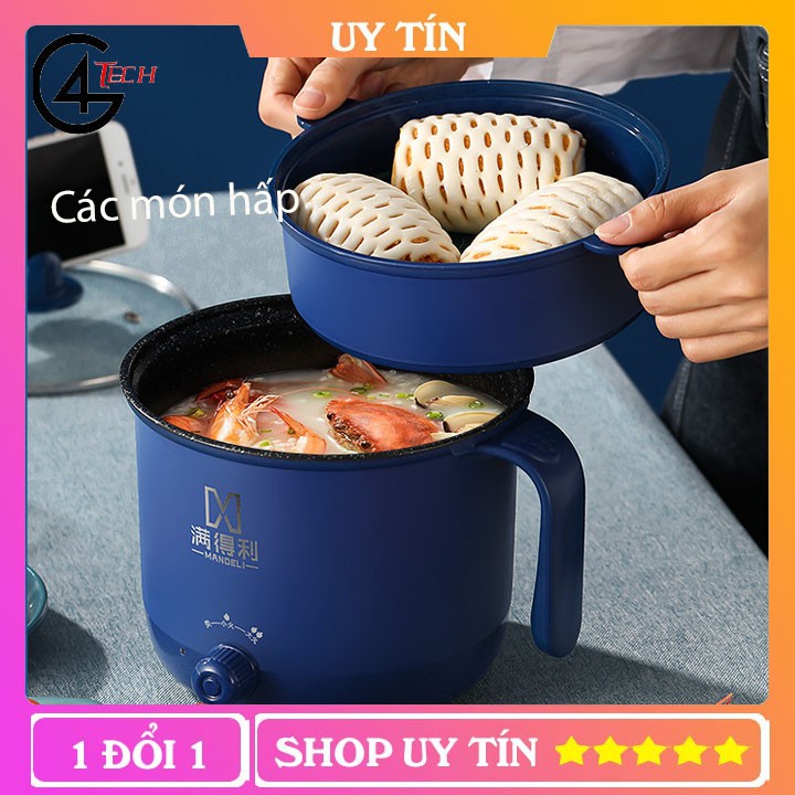 𝑭𝑹𝑬𝑬 𝑺𝑯𝑰𝑷 Nồi Lẩu Điện Shiban Mini Núm Xoay 2 NẤC NHIỆT Kèm Giá Hấp 1,8L, Ca Nấu Mì,Nấu Cơm Đa Năng 2 Tầng Cao Cấp