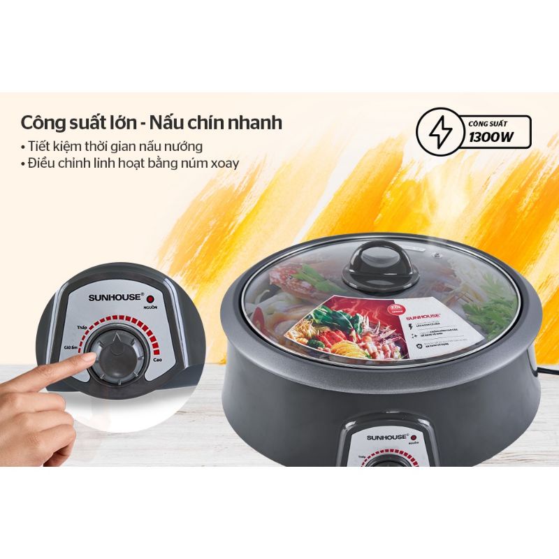 Thiết Bị Điện Gia Dụng > Đồ gia dụng nhà bếp > Nồi nấu đa năng || [Mã 253ELSALE hoàn 7% đơn 300K] Nồi lẩu điện SUNHOUSE 3L SHD4522 hàng chính hãng giá rẻCòn hàng