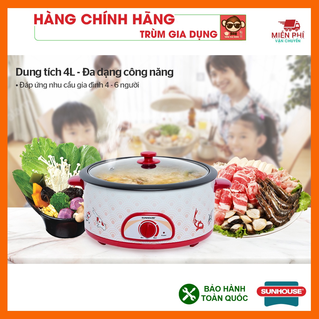 Giới thiệu Nồi lẩu điện Sunhouse 4L SHD525, Nồi lẩu Sunhouse SHD525 làm nóng nhanh, tỏa nhiệt cao cấp.