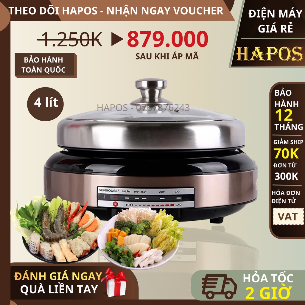 Giới thiệu Nồi lẩu điện Sunhouse SHD4526, Công suất 1300W, Dung tích 4 lít - Hapos