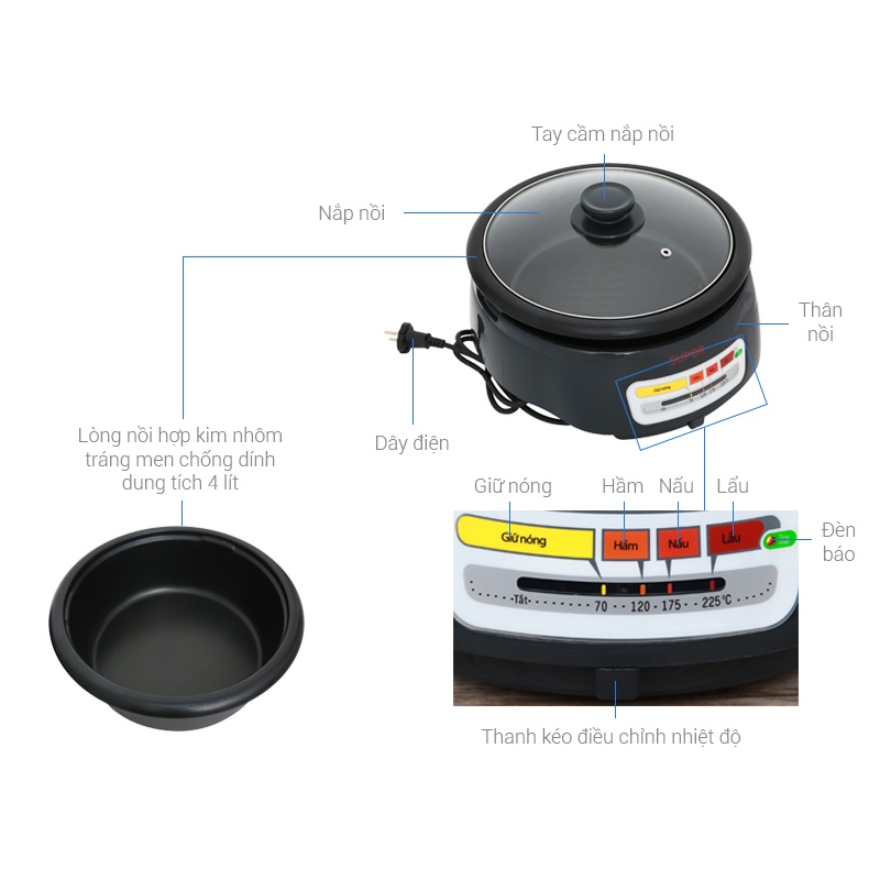 ✔ Đa chức năng: Lẩu, Xào, Chiên, Rán, kho cá…rất tiện lợi