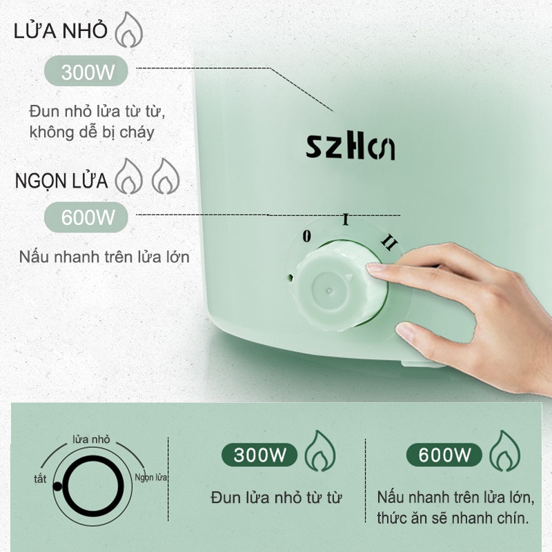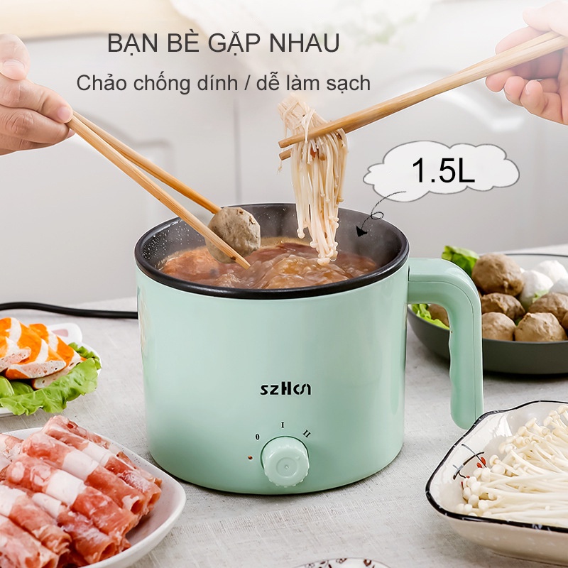 Nồi lẩu điện từ mini 1.5L (nấu cháo, hầm, rang, hấp, luộc) cho 1-2 người ăn {NBDZG}