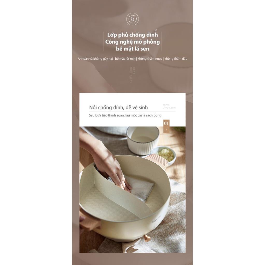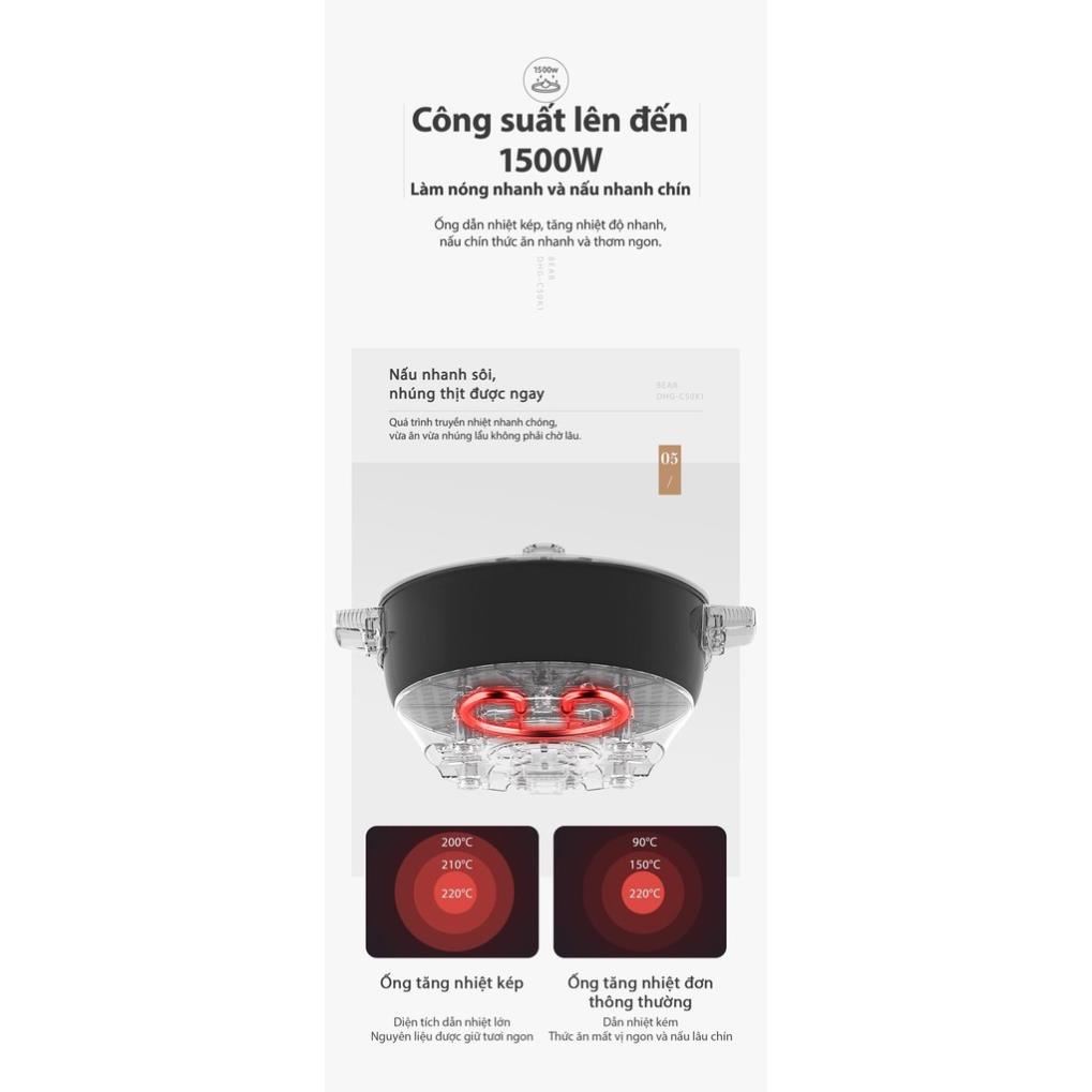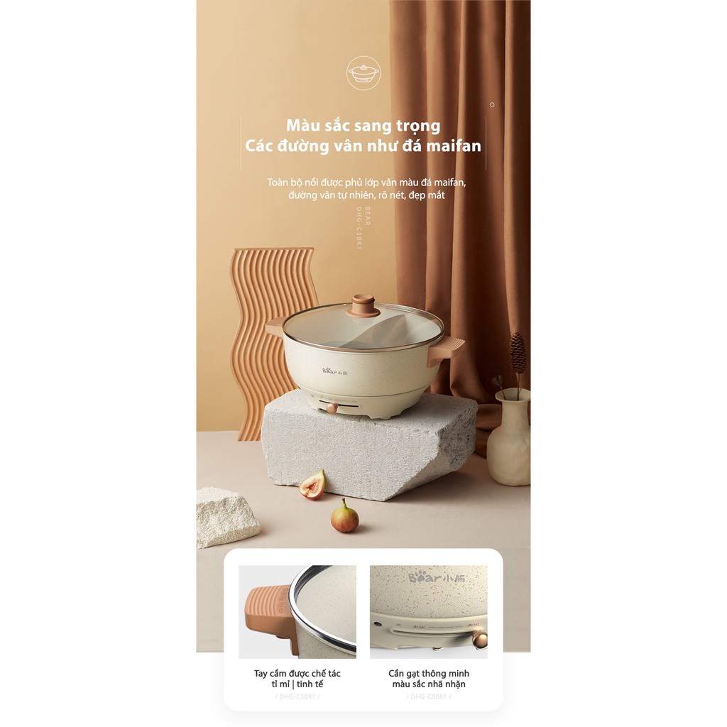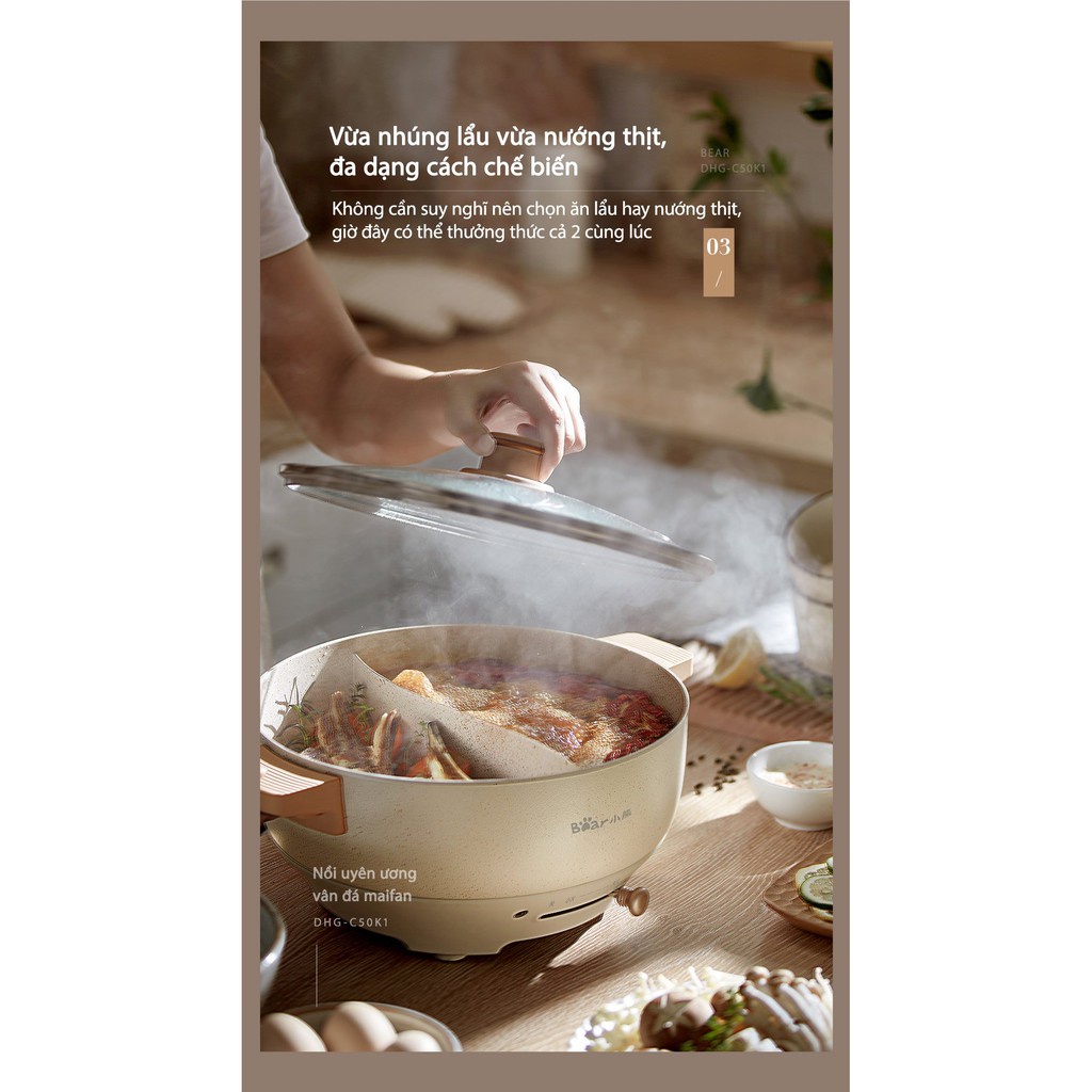 Nồi lẩu điện uyên ương Bear DHG-C50K1 5L 2 ngăn công suất lớn cho gia đình từ 2- 4 người