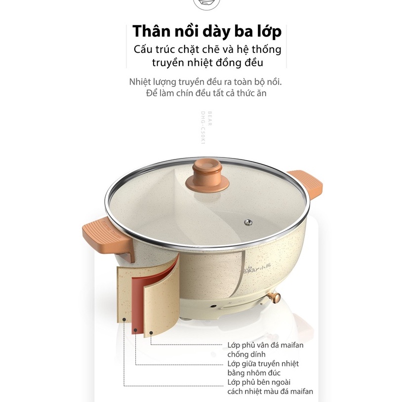 Nồi Lẩu Điện Uyên Ương Bear Chính Hãng DHG-C50K1 - Bảo Hành 18 Tháng
