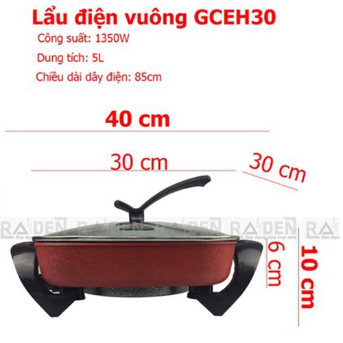 THÔNG SỐ KỸ THUẬT- Tên sản phẩm: Nồi lẩu điện vuông GreenCook GCEH30
