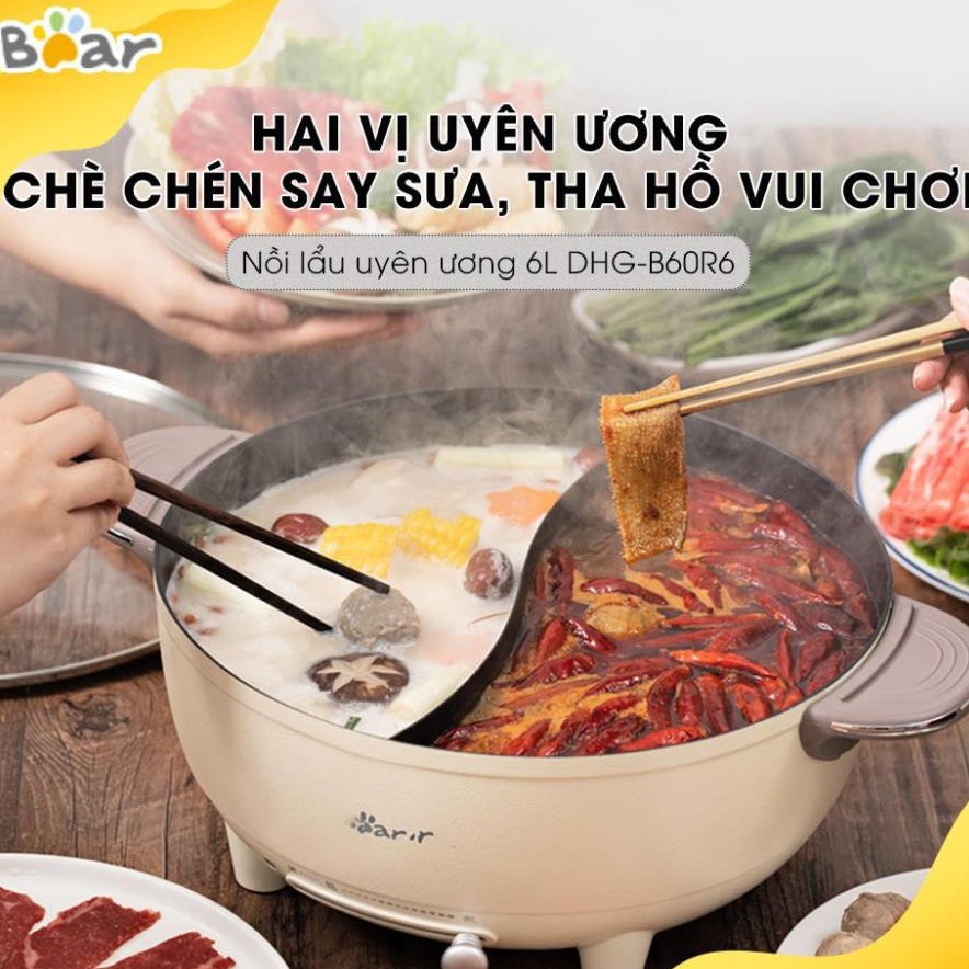 Nồi lẩu hai ngăn điện dung tích 6L Bear nhập khẩu chính hãng bảo hành 12 tháng