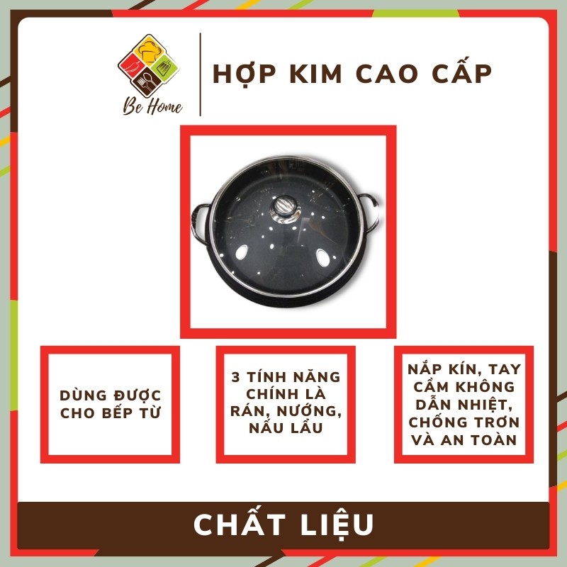 Nồi Lẩu Hàn Quốc BEHOME Nồi Rán Nướng Nấu Lẩu - Đa Năng - An Toàn Tuyệt Đối