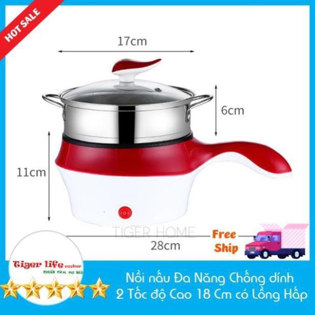 Nồi lẩu, Hấp, Chiên, Xào, Nấu mỳ Đa năng 2 tầng Chống Dính 18cm TIêu Chuẩn Châu Âu Ổ cắm 2 Chấu 2 TỐC ĐỘ An toàn Bền Bỉ