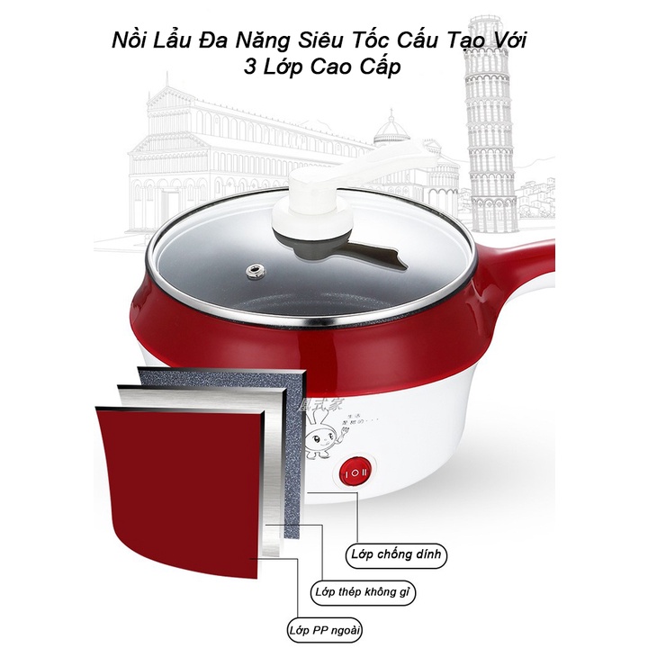 Nồi lẩu hấp đa năng 2L chống dính công suất 600W tự ngắt điện an toàn 2021