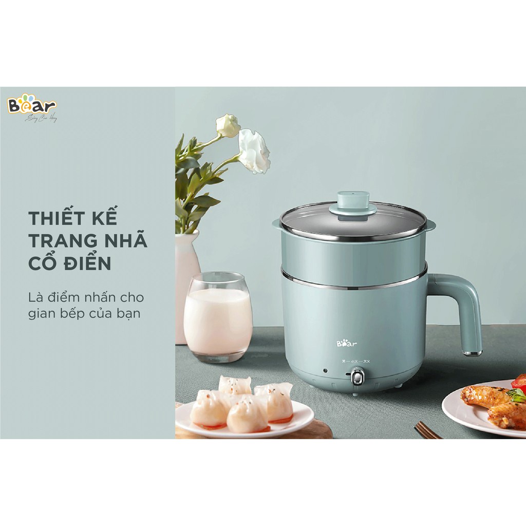 Nồi lẩu hấp điện 2 tầng đa năng Bear DRG-D12M5 dung tích 2L chất liệu an toàn chịu nhiệt lõi thép không gỉ Tuli Store
