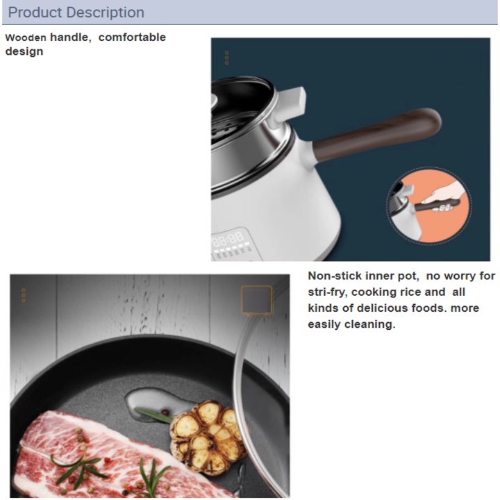 - 1 bếp 9 tác dụng (Noodles: Mỳ sợi, Rice: nấu cơm, Poridge: nấu cháo, Hotpot: lẩu, Soup: súp, Steam: hấp, Braise: nướng, Cook: nấu và Fry: chiên)