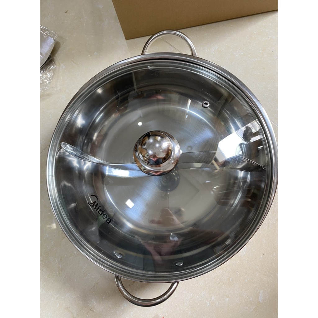 Mô tả chi tiết của Nồi lẩu 2 ngăn inox dày có nắp kính cao cấp