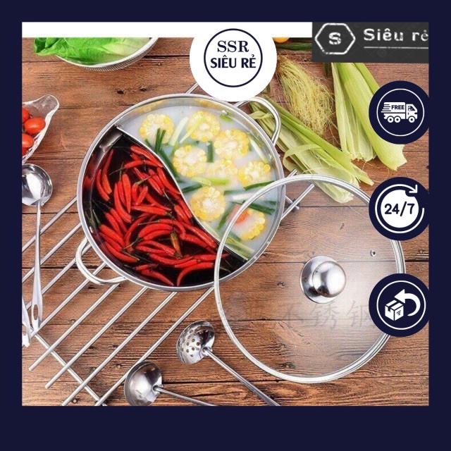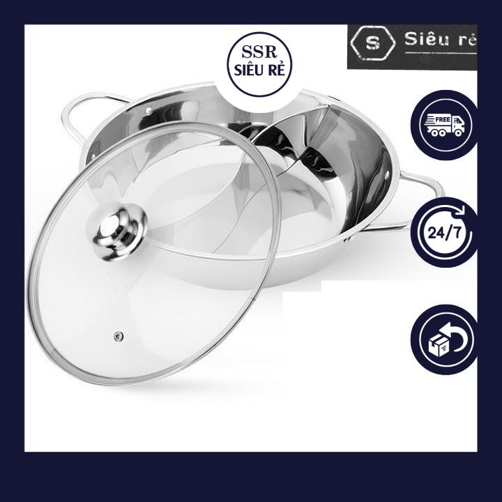 Nồi lẩu Hot Pot 2 ngăn inox - size lớn 30cm - dầy dặn nấu được bếp từ cao cấp (PD7399)