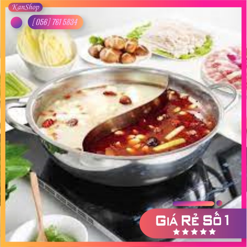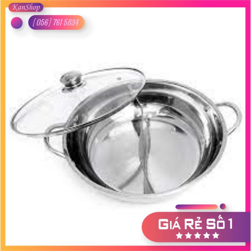 Nồi Lẩu Inox 2 Ngăn 30cm Cao Cấp Không Bị Oxy Hoá Thụ Nhiệt Nhanh Kiểu Dáng Đẹp Mắt Vung Trong Suốt Siêu Tiện Lợi