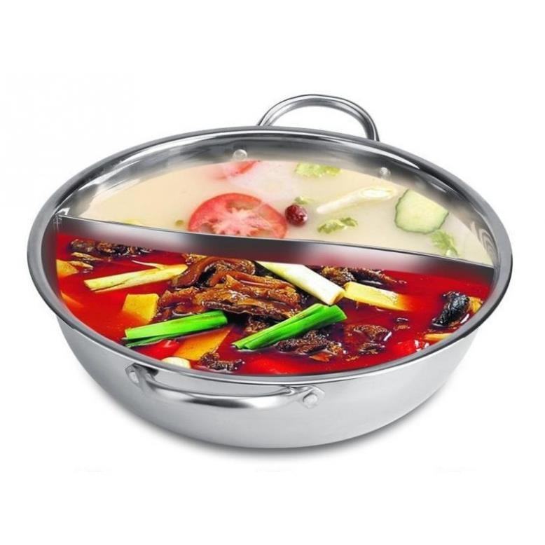 Nồi lẩu inox 2 ngăn 30cm - Đồ dùng nhà bếp tiện lợi đa năng