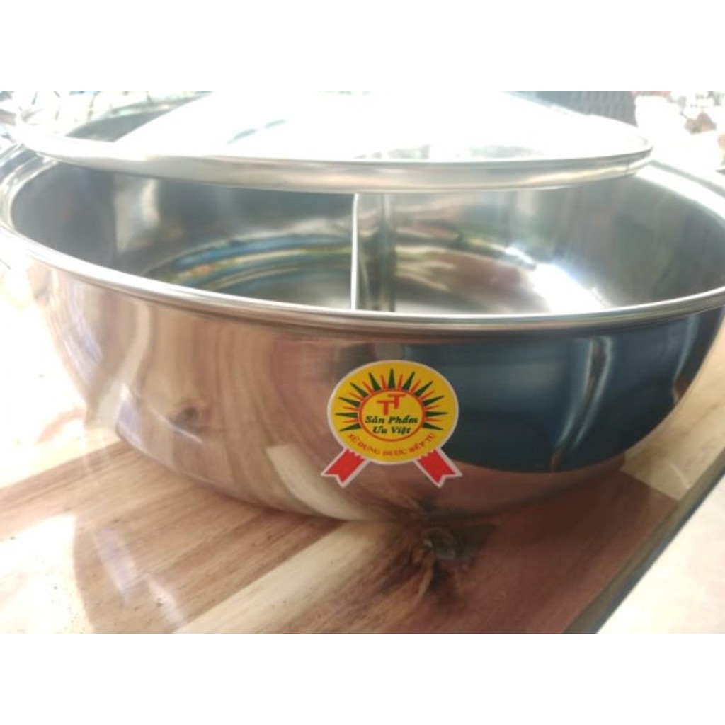 Nồi lẩu inox 2 ngăn có nắp kính cao cấp.