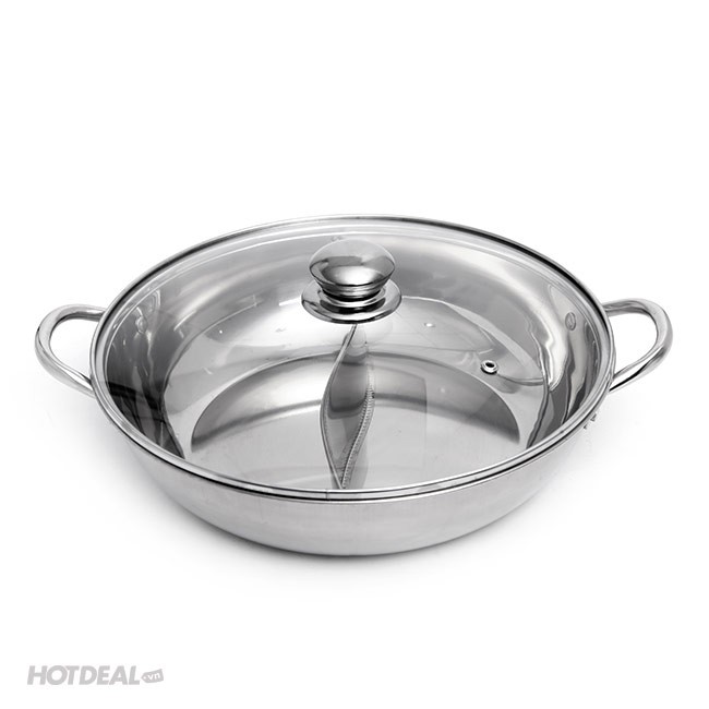 Nồi Lẩu Inox 2 Ngăn HOTPOT tặng kèm nắp kính