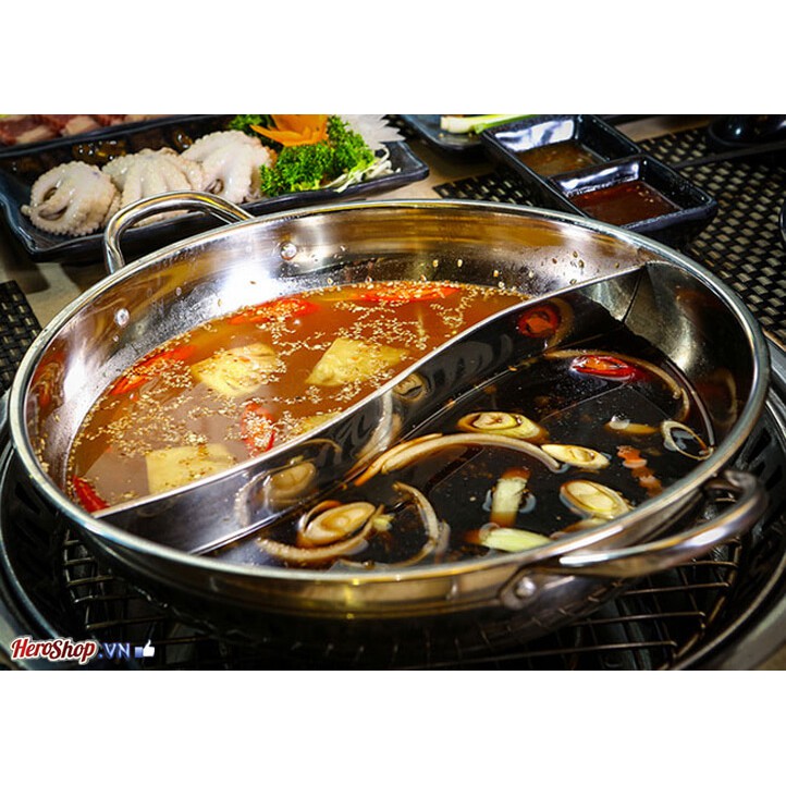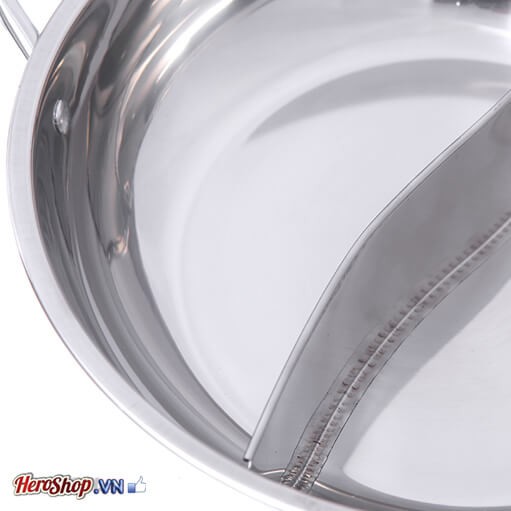 - Nồi lẩu inox 2 ngăn cao cấp 28 cm tiện dụng, mang đến nồi lẩu thơm ngon cho cả gia đình.
