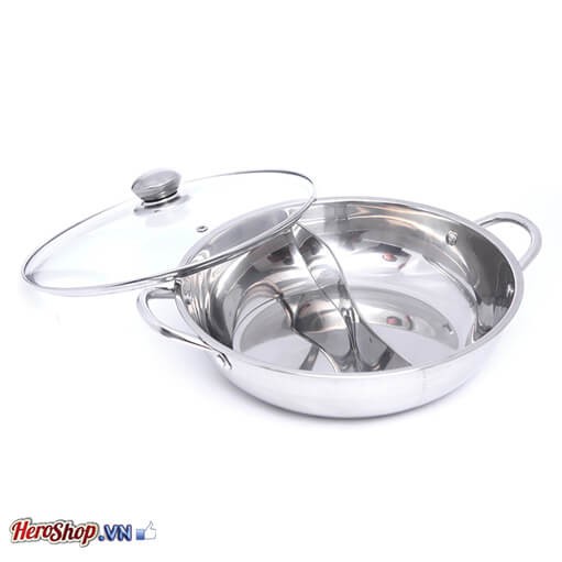 Nồi Lẩu Inox 2 Ngăn Nắp Thủy Tinh 28cm Sang Trọng Tiện Ích