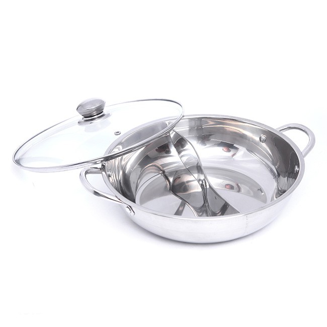 Nồi Lẩu Inox 2 Ngăn Nắp Thủy Tinh 28cm Sang Trọng Tiện Ích