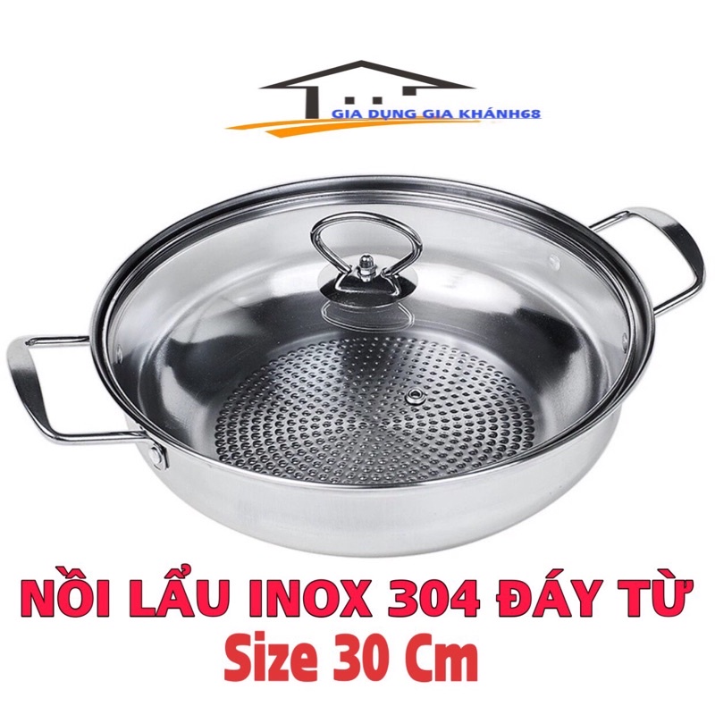 Nồi lẩu inox 304 đáy từ, (size 30cm)Dùng Tất Cả mọi loại bếp, phù hợp ăn lẩu,xào thực phẩm