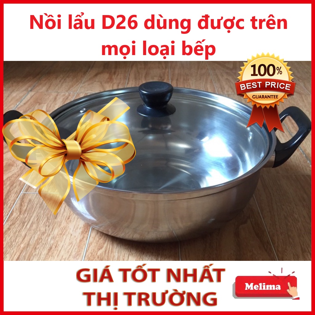 Nồi lẩu INOX D26, Dùng được trên mọi loại bếp, Tay cầm cách nhiệt chống nóng, Vung tráng kính cường lực siêu bền, Siêu Rẻ✅ Cam kết từ Melima