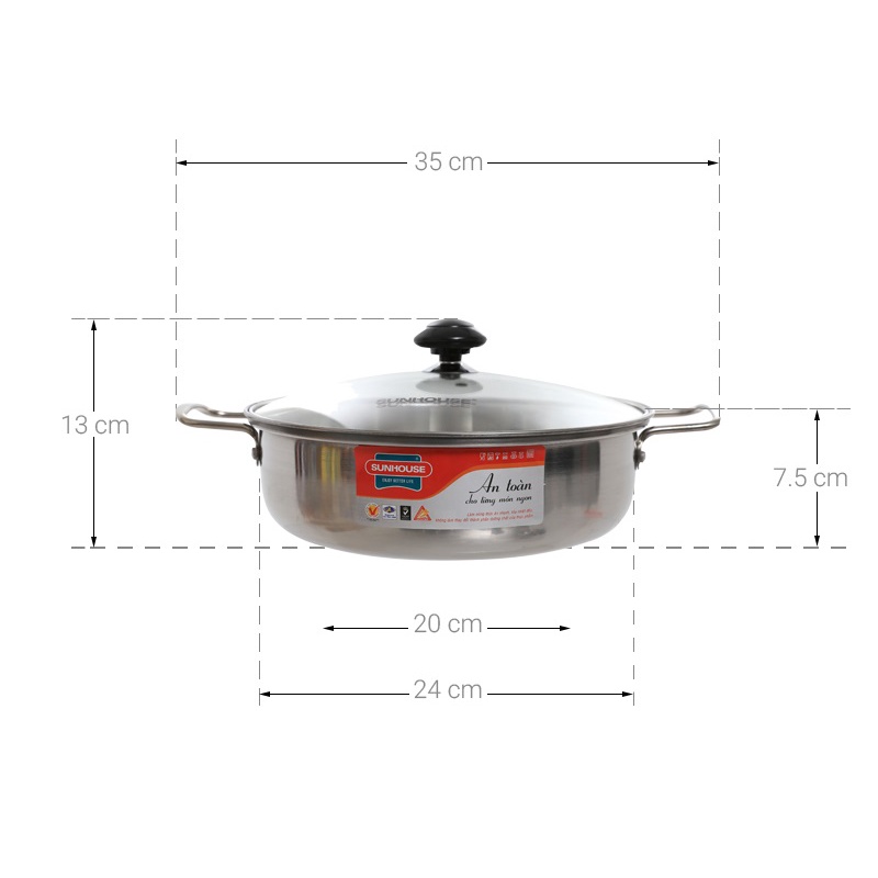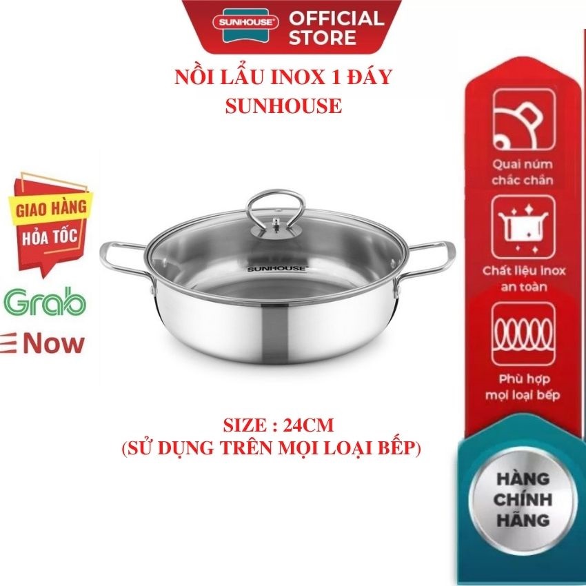 Giới thiệu Nồi lẩu inox đáy từ SUNHOUSE 24 26CM Siêu Dày (dùng được trên mọi loại bếp) Mới 100% Chính Hãng Bảo Hành Toàn Quốc