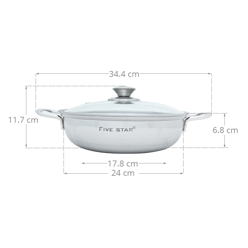 Nồi lẩu inox nắp kính 24/26/28 cm Fivestar