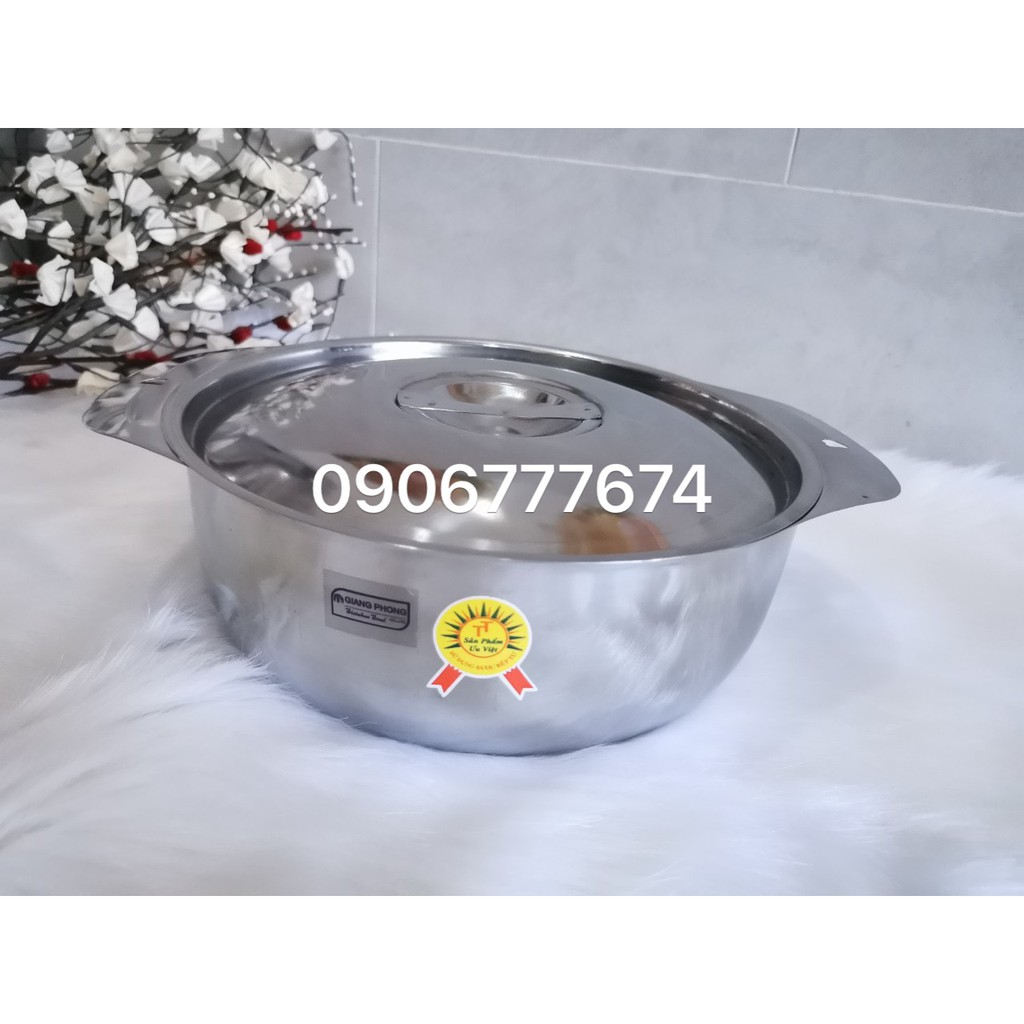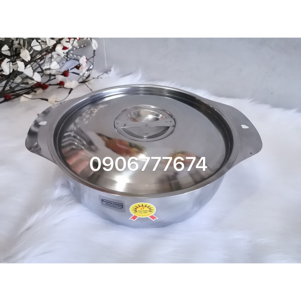 Nồi lẩu inox có kích cỡ đường kính 24 x 8 cm.Được làm từ chất liệu Inox bền đẹp, không hoen gỉ qua thời gian sử dụng.