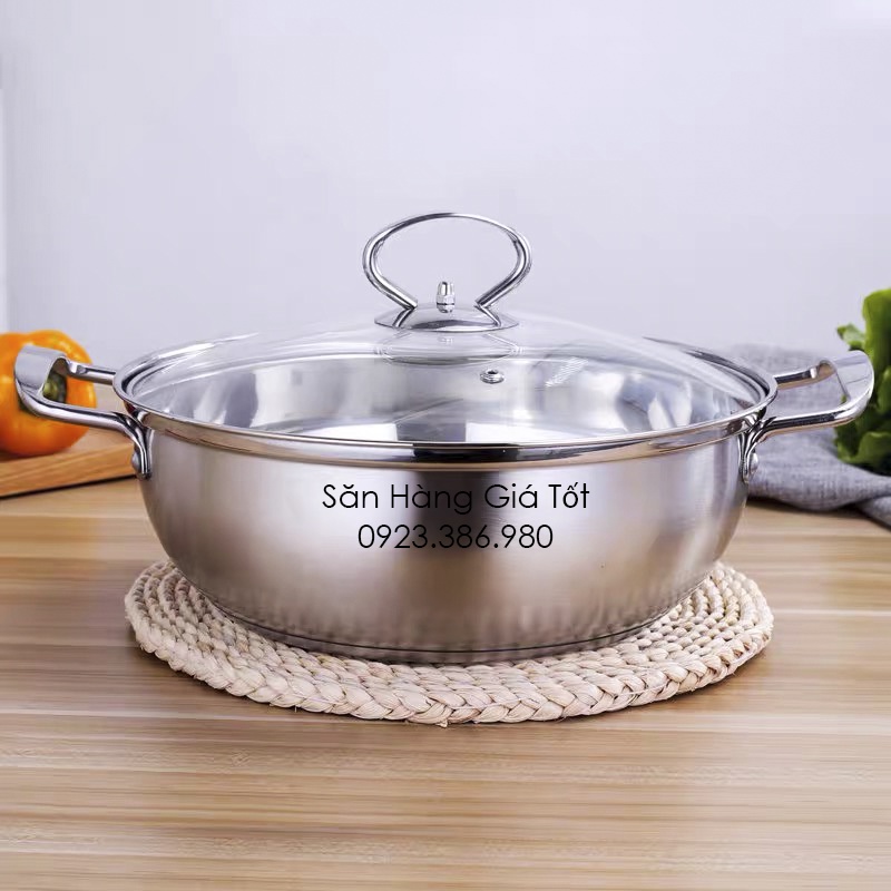 Nồi lẩu inox vung kính Size 26-28-30cm / Dùng cho mọi loại bếp.