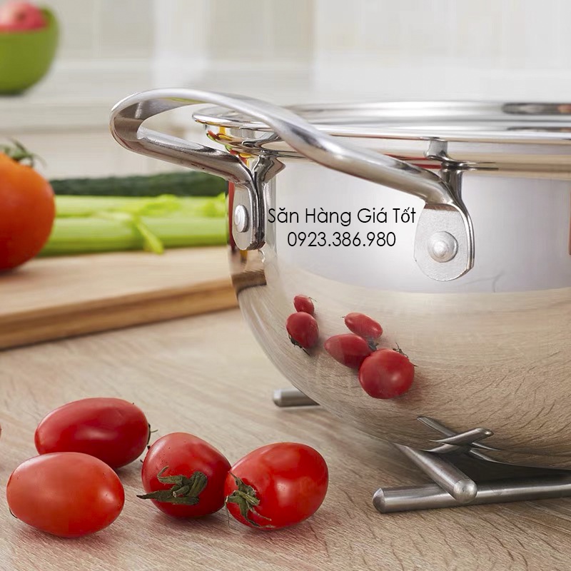 Nồi Lẩu Inox Vung Kính• Chất liệu: Nồi được làm bằng inox, vung được làm bằng kính cường lực.