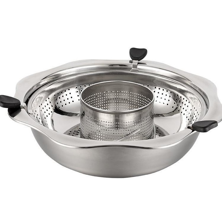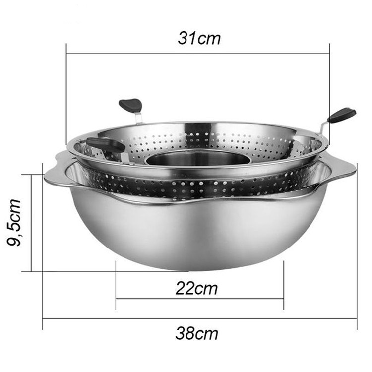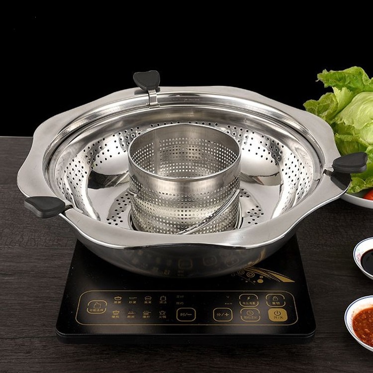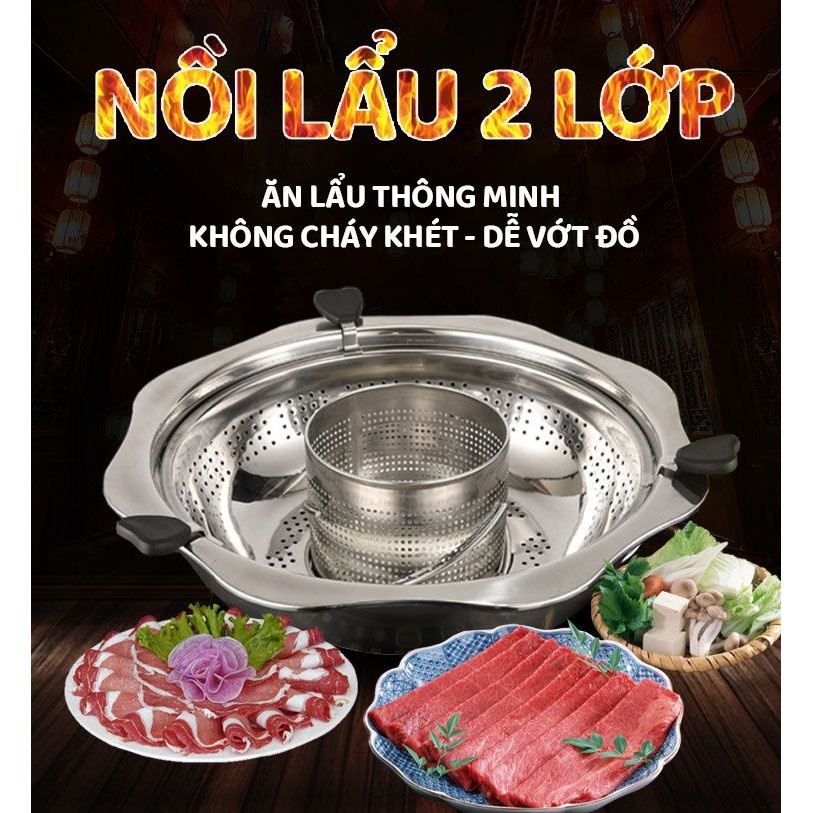 Nồi Lẩu Inox Xoay 2 Tầng Chống Dính, Nồi Lẩu inox 2 Tầng Dùng Cho Mọi Loại bếp