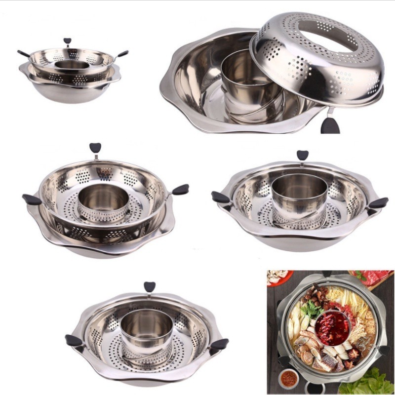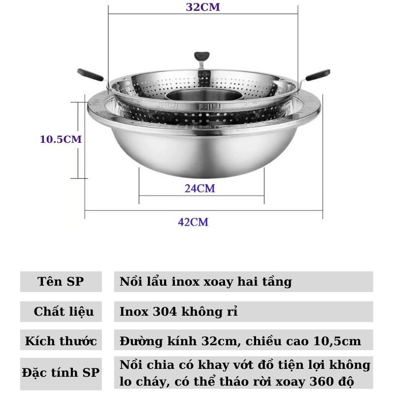 Nhà cửa & Đời sống > Dụng cụ nhà bếp > Nồi || Nồi lẩu inox xoay 2 tầng Hàn Quốc Nồi lẩu inox 2 tầng bếp từ và bếp gasCòn hàng