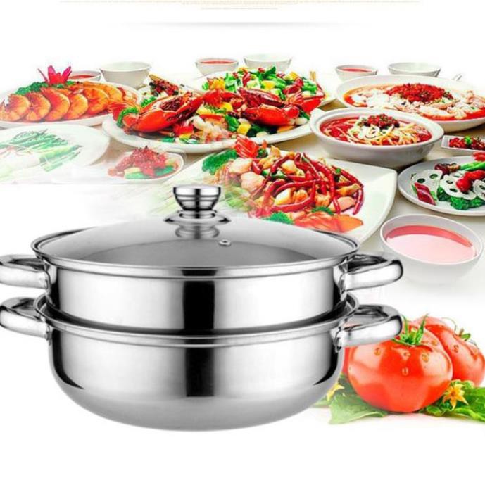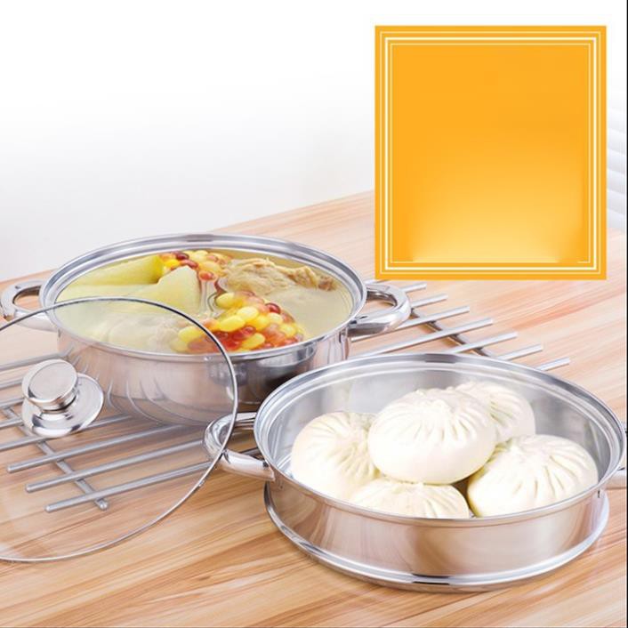 Nhà cửa & Đời sống > Dụng cụ nhà bếp > Nồi || Nồi lẩu kiêm nồi hấp 2 tầng inox nắp thủy tinh cao cấpCòn hàng