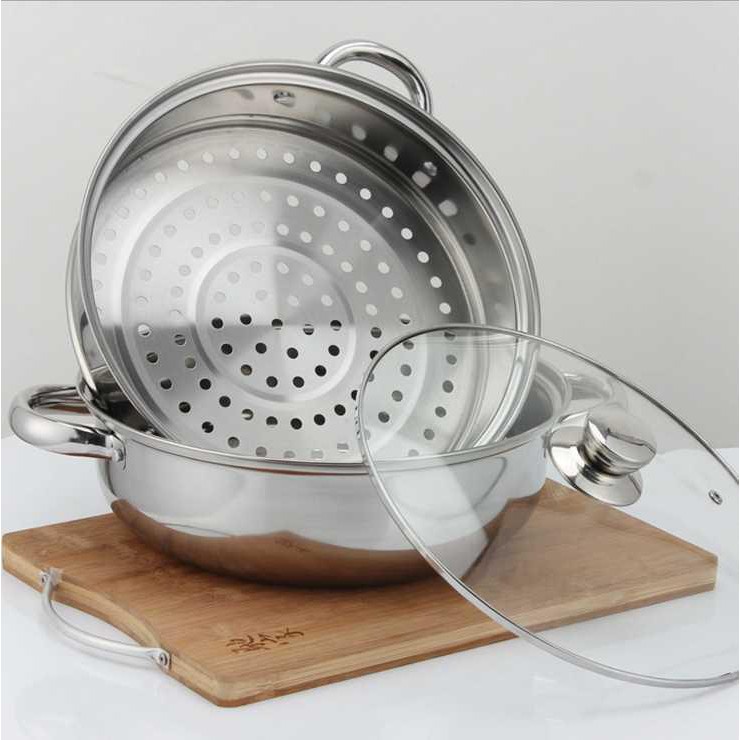 Nhà cửa & Đời sống > Dụng cụ nhà bếp > Nồi || Nồi lẩu kiêm nồi hấp bánh bao xôi 3 tầng inox nắp thủy tinh dùng cho mọi loại bếpCòn hàng