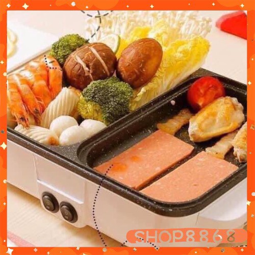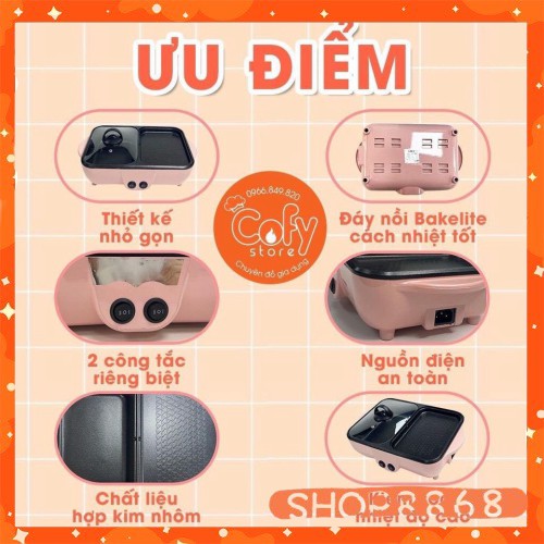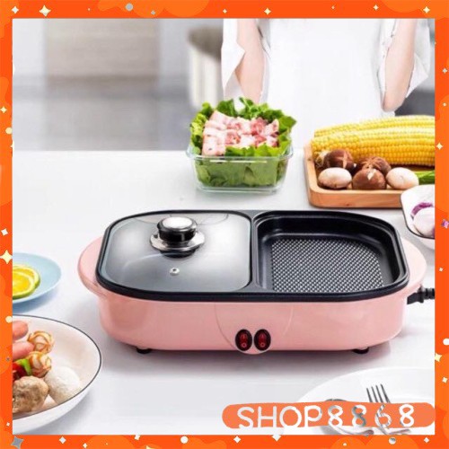 Giới thiệu Nồi lẩu kiêm nướng 2 in 1 mini - shop8868 (giao màu ngẫu nhiên)