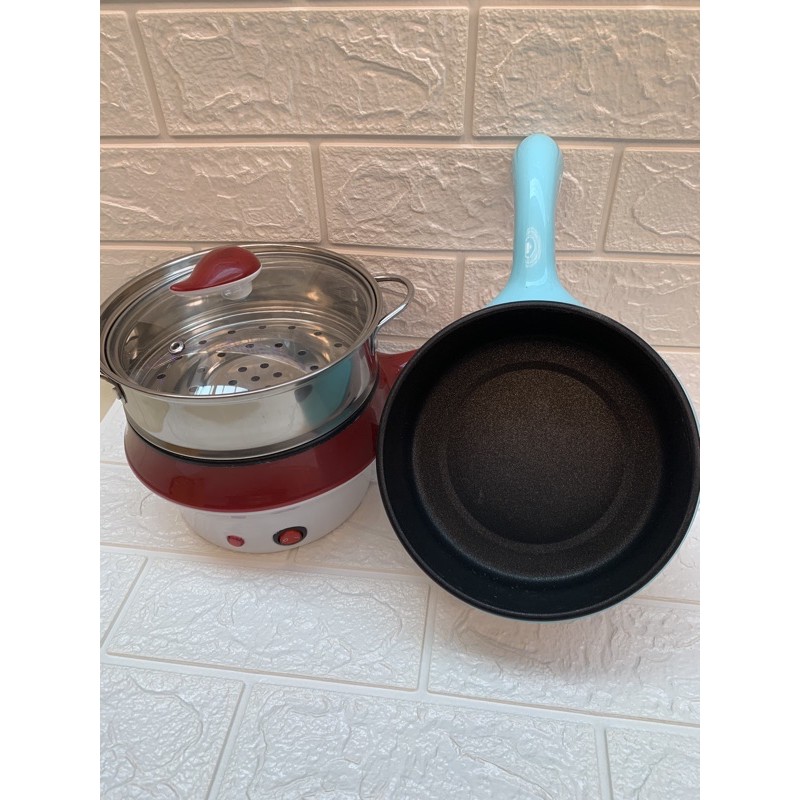 Nồi lẩu mini đa năng có tay cầm tặng kèm xửng hấpNếu những loại nồi lẩu to không thích hợp sử dụng khi có 1-2 người, khó mang theo khi đi du lịch, dã ngoại và giá cả cao làm bạn băn khoăn.