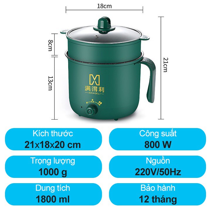 Nồi Lẩu Mini 2 Nấc Nhiệt Kèm Giá Hấp Có Tay Cầm Mẫu Mới 2021, Ca Nấu Mì, Chiên, Sào Đa Năng Xanh Lục Bảo - LAI'S STORE