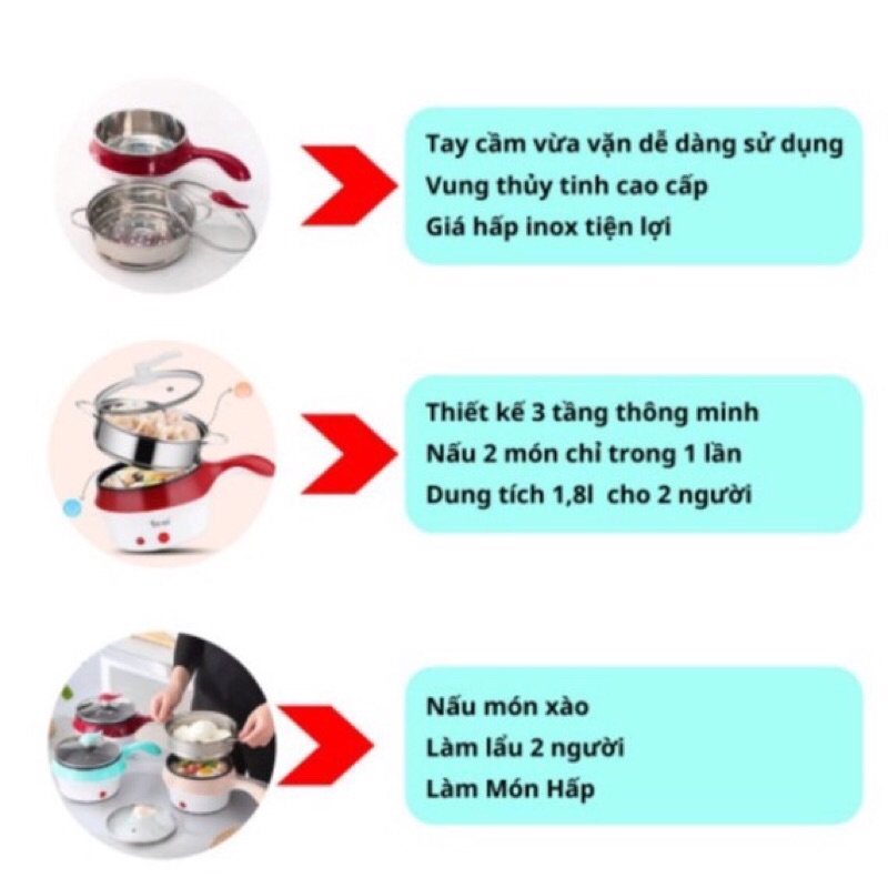 Nồi Lẩu, Ca Nấu Mì 2 Tầng Mini Đa Năng, Chiên, Hấp, Lẩu, Rán Siêu Tiện Dụng, Bảo Hành 6 Tháng==================================