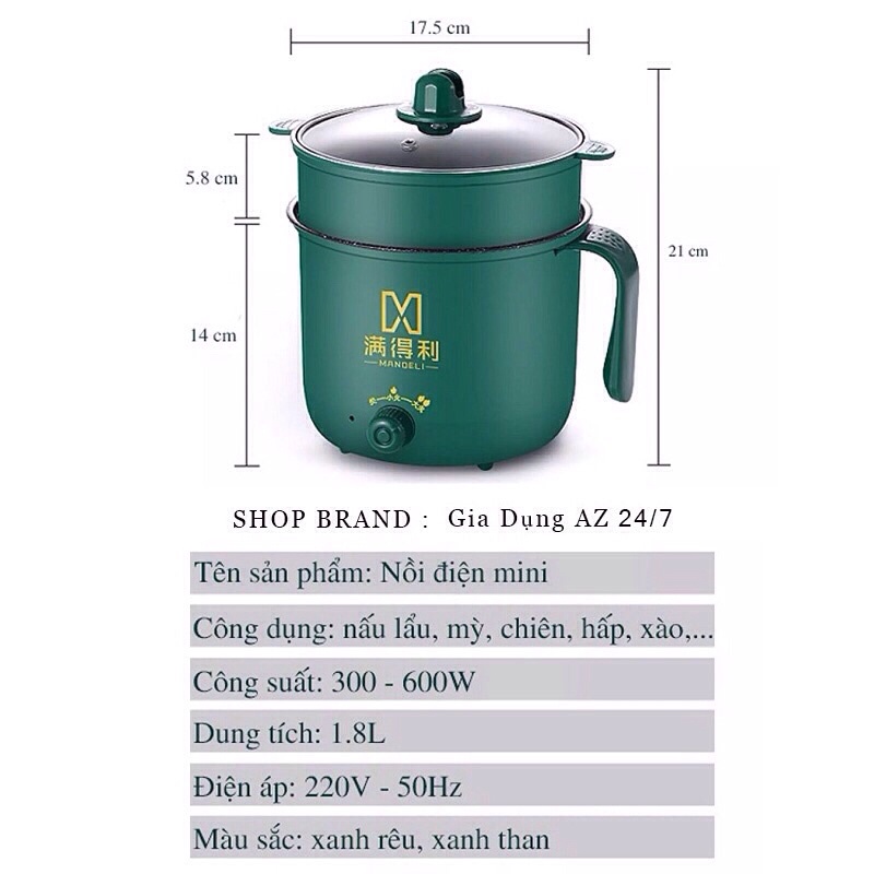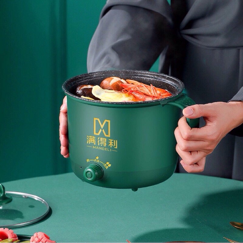Nồi lẩu mini ca nấu lẩu, nấu cơm ,mì xào rán đa năng có tay cầm 2 nấc nhiệt tạng kèm giá hấp