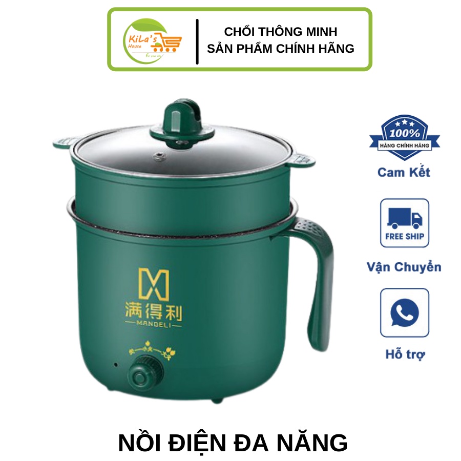 Nồi Lẩu Mini, Ca Nấu Mì Cầm Tay, Nấu Cơm Đa Năng Có Tay Cầm 1,8L - Nồi Lẩu Điện 2 Nấc Nhiệt Mẫu Mới 2021 Kèm Giá Hấp