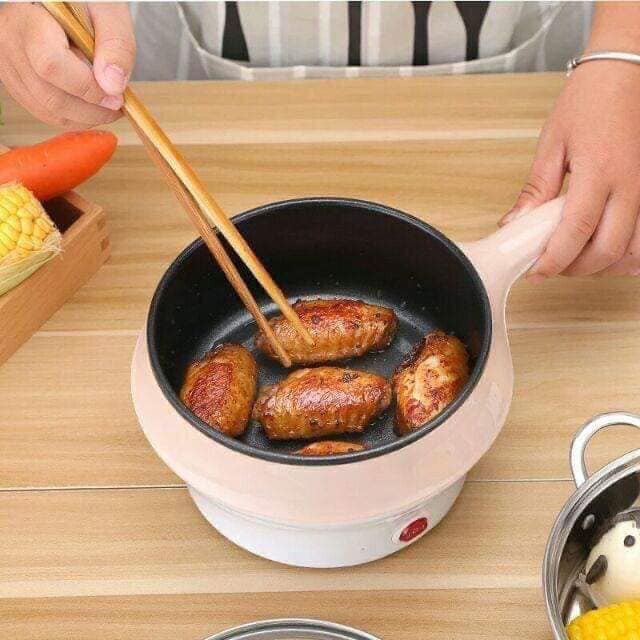 NồI Lẩu Mini, Ca Nấu Mì Điện 2 Tầng Chống Dính Đa Năng, Tiện Lợi