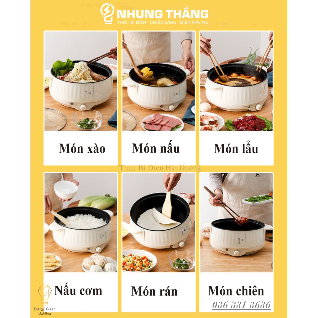 - Nồi lẩu điện mini giúp bạn nhanh chóng có được những món ăn ưa thích như: mỳ phở ăn liền, lẩu, các món kho và luộc, nấu cháo, hâm nóng thức ăn, đun nước, chiên xào...