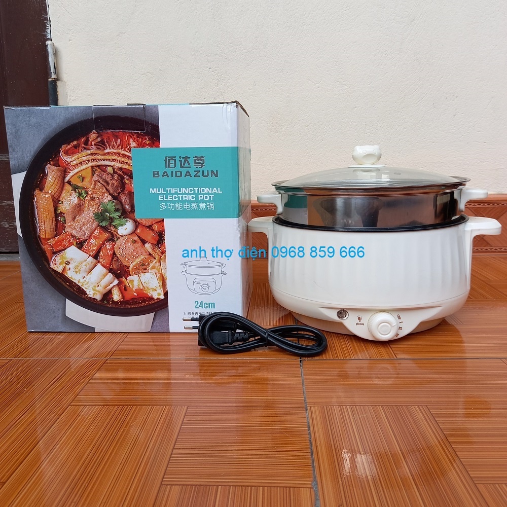 Giới thiệu Nồi Lẩu Mini Cắm Điện Đa Năng Lớp Chống Dính Teflon Cao Cấp (2 tầng kèm giá hấp núm xoay)