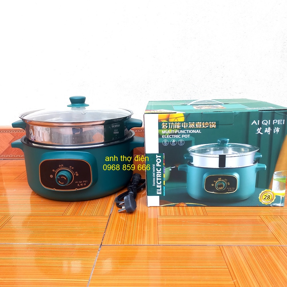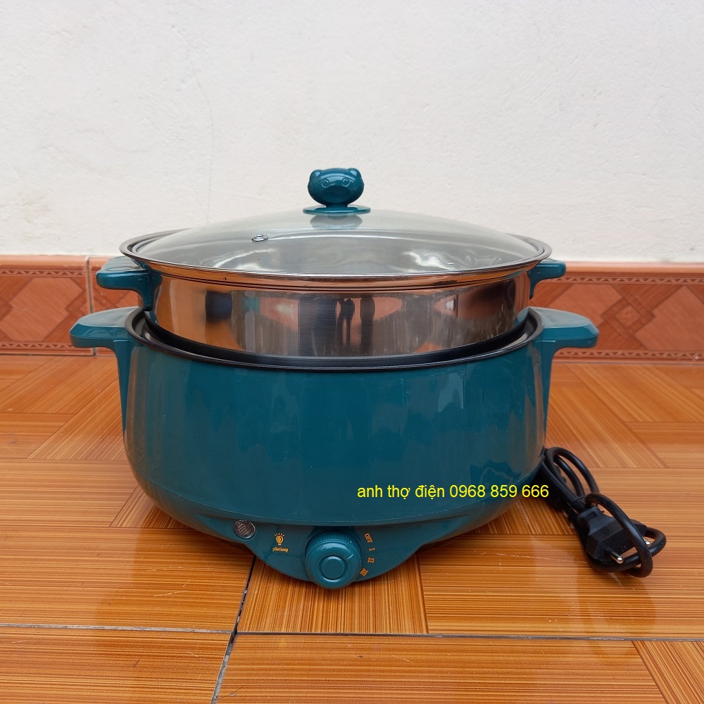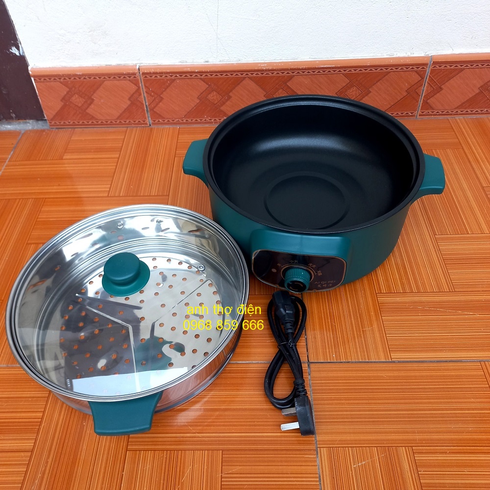 Nồi Lẩu Mini Cắm Điện Đa Năng Lớp Chống Dính Teflon Cao Cấp (2 tầng kèm giá hấp núm xoay)