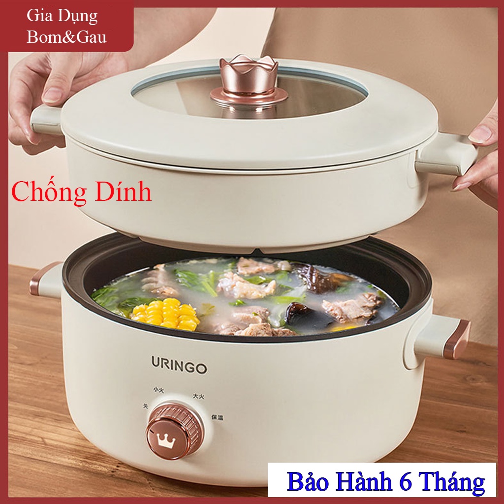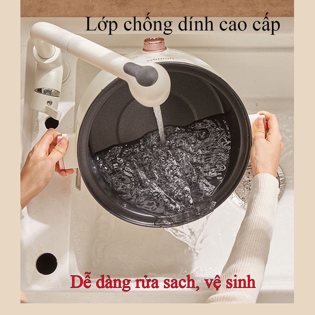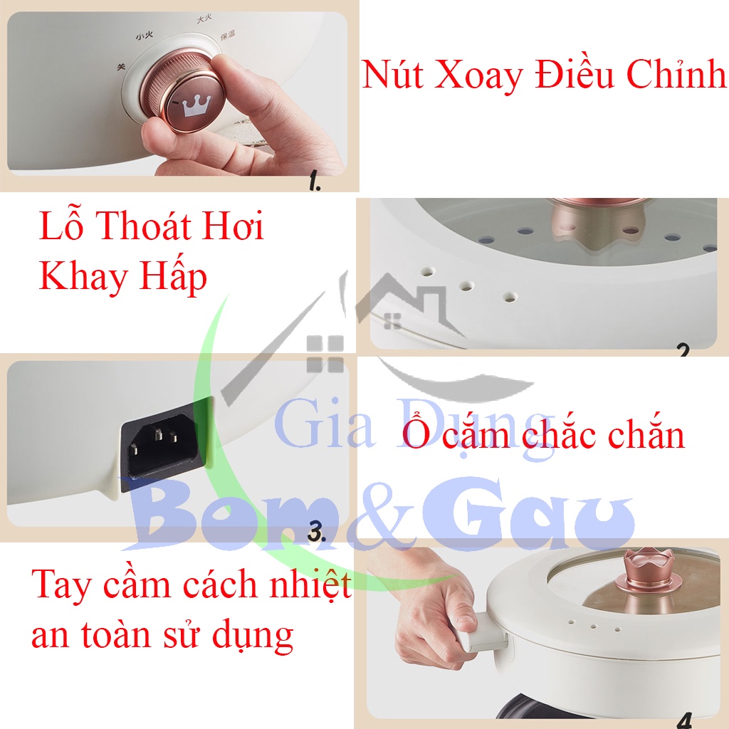 Nồi lẩu mini cắm điện đa năng kèm khay hấp cao cấp, tay cầm cách nhiệt, lớp chống dính teflon