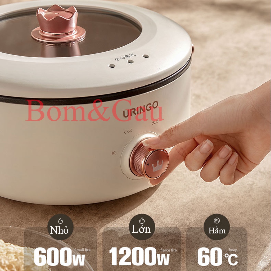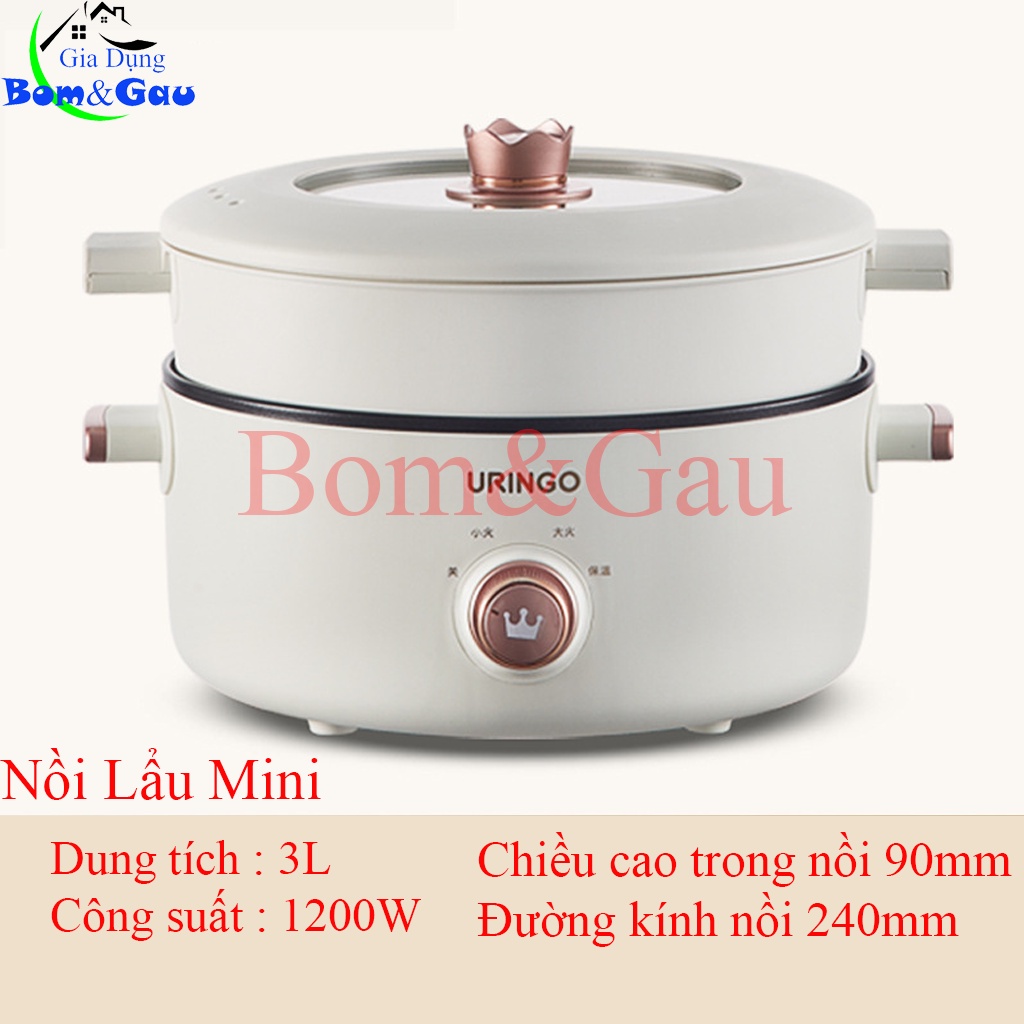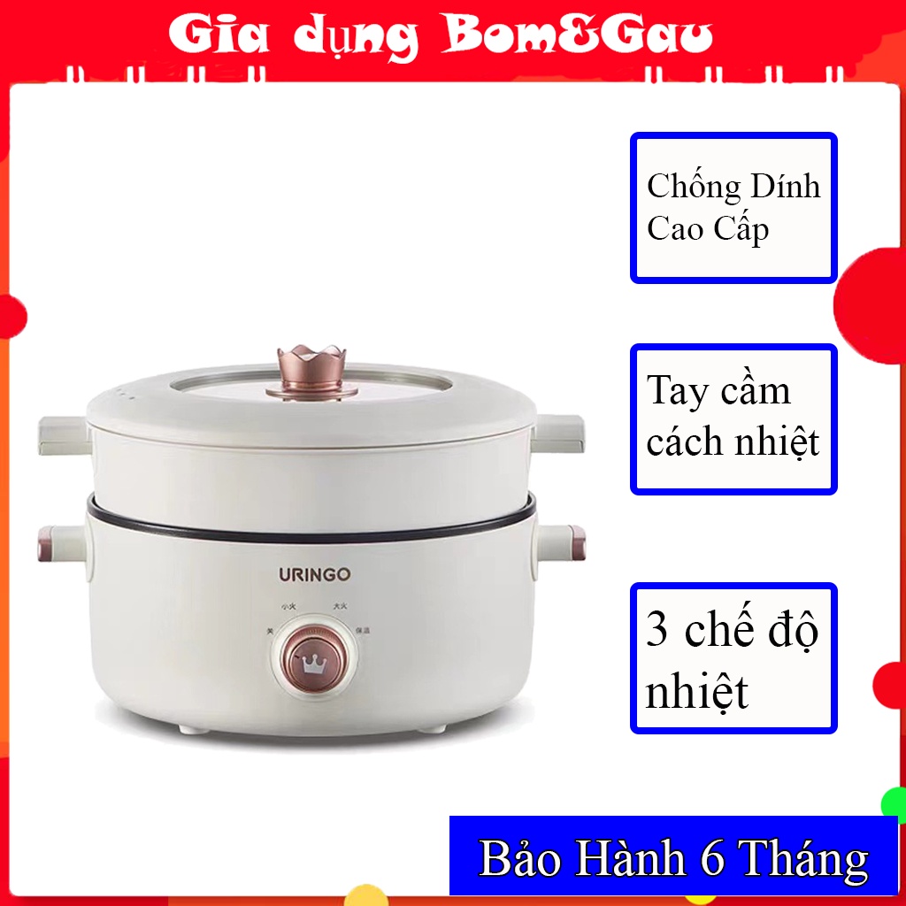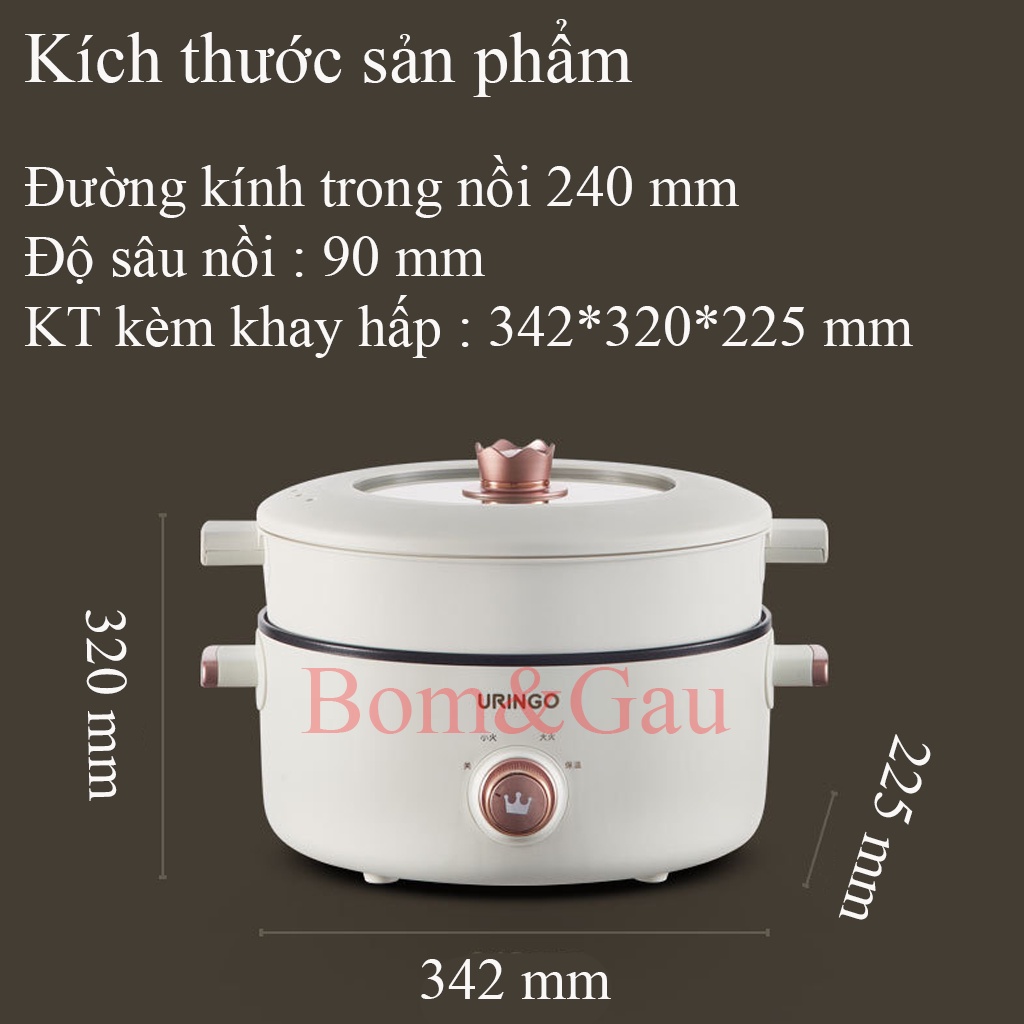 Nồi lẩu mini cắm điện đa năng kèm khay hấp cao cấp, tay cầm cách nhiệt, lớp chống dính teflon